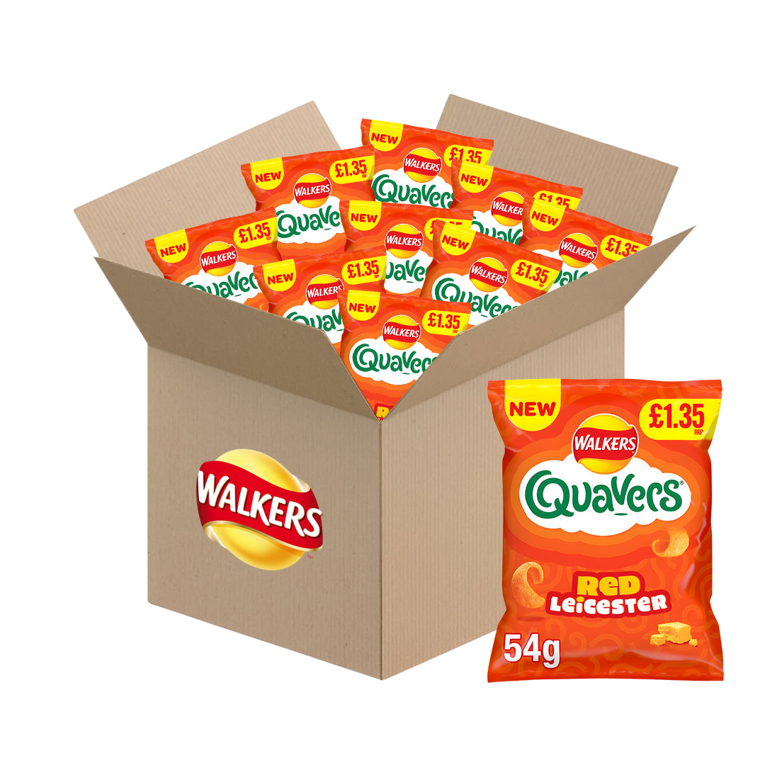 18 x 54g PacksSale price £12.99 Regular price WASUnit price per£24.30🧀 Walkers Quavers Red Leicester Cheese Flavour 18 × 54g 🐼Minimum Best Before: 13/12/2025 Light, curly and deliciously...Save £11.31 -
