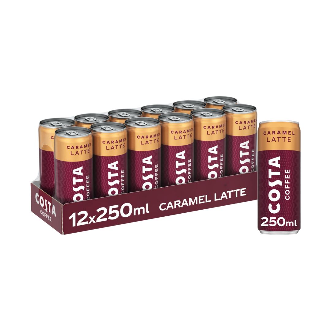 1 × case of 12 × 250ml Costa Coffee Caramel Latte cans (Total 3L)
