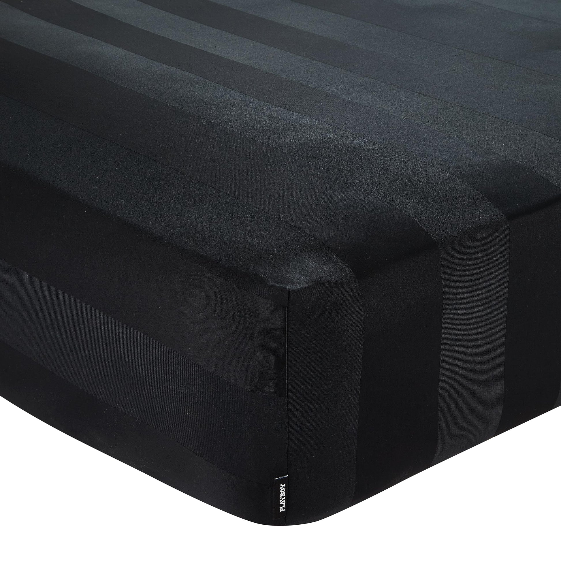🖤✨ Playboy Soft Satin Stripe Double Fitted Sheet – Black ✨🖤